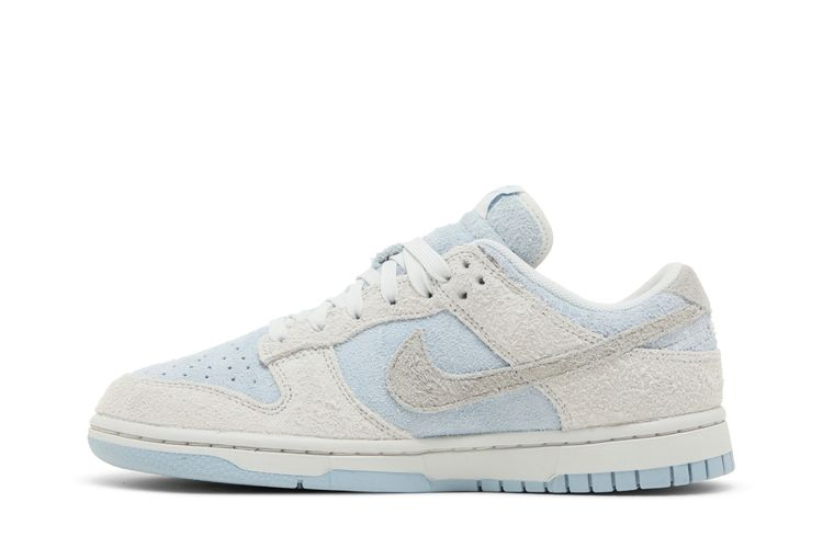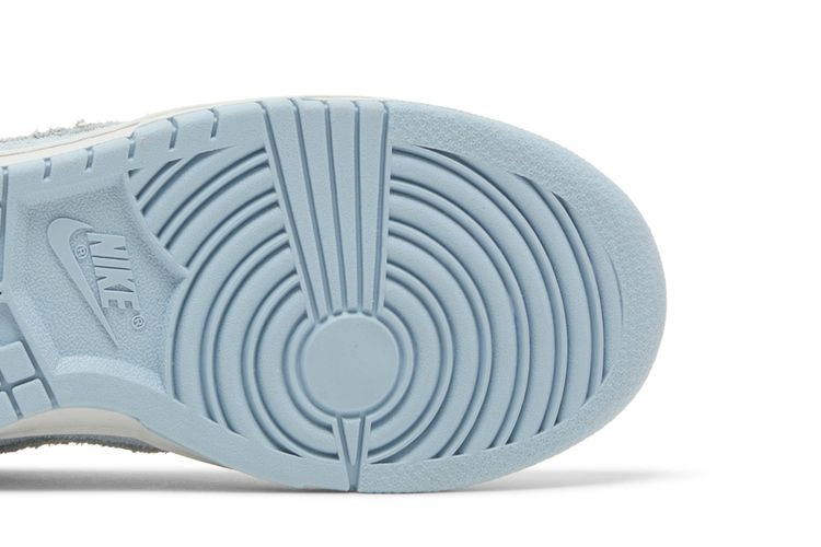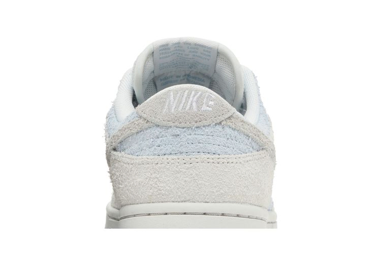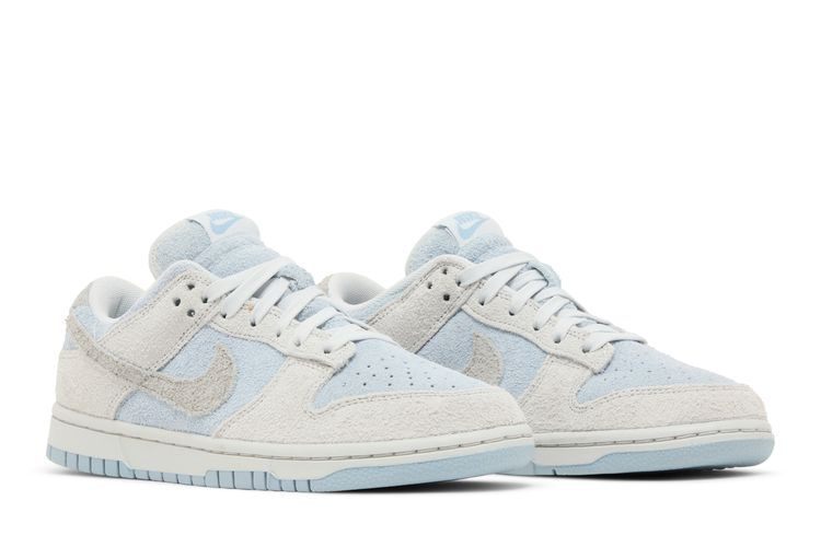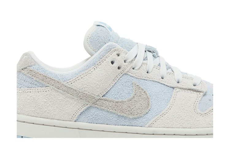 Женские кроссовки Nike Dunk Low "Photon Dust Armory Blue" выполнены из мохнатой замши, имеют бледно-голубую основу со светло-серыми акцентами на носочной и пяточной части. Чуть более темный оттенок серого цвета используется на фирменном логотипе Swoosh и задней вкладке, украшенной тональной вышитой надписью Nike. Кроссовки стоят на прочной резиновой подошве, подчеркнутой белыми боковинами и светло-голубой резиновой подошвой.