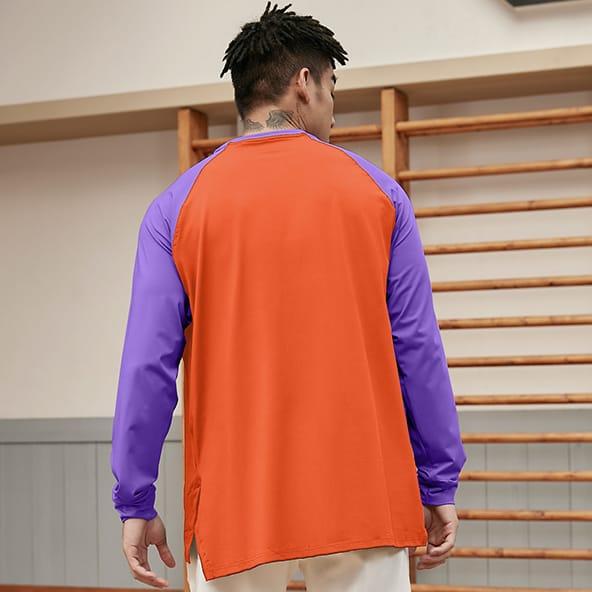 Лонгслив Ehot Colorblock Orange-Purple Longsleeve оранжевый из легкой и прочной ткани отличается эргономичным кроем. Рукава реглан сиреневого цвета не стесняют движений, а свободный крой с разрезами по бокам обеспечивает комфортную посадку. Яркий лонгслив оптимально подойдет для занятий спортом или прогулки.