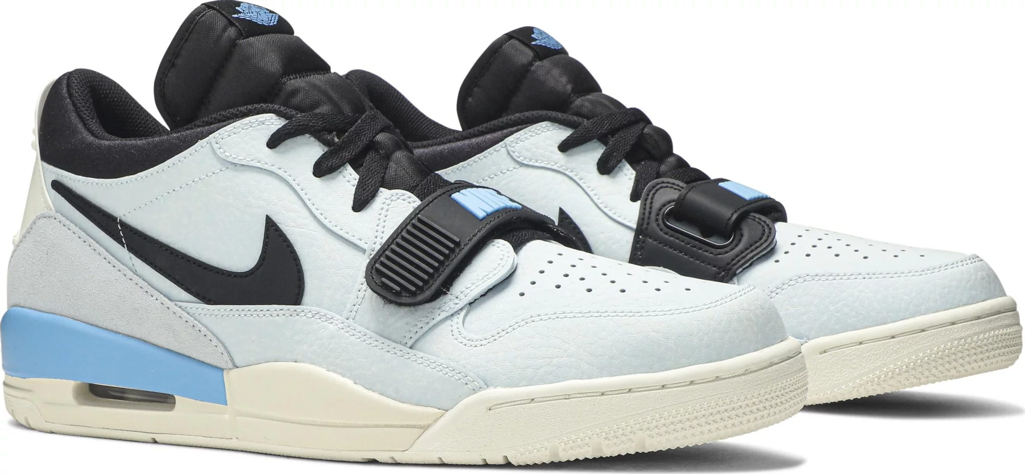 Чтобы создать Air Jordan Legacy 312 Low Pale Blue, дизайнер и давний сотрудник Jordan Brand Дон Си объединил элементы Air Jordan 1, Air Jordan 3 и Nike Alpha Force Low. В результате получился привычный силуэт с неожиданными штрихами, включая смелый ремешок на средней части стопы с тисненой надписью "NIKE". Верхняя часть напоминает о ретро Джорданах, а подошва Air Jordan 3 служат прямой отсылкой в сторону классических силуэтов бренда.