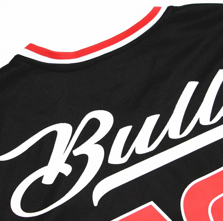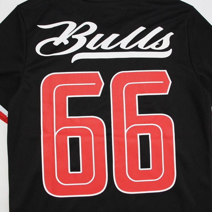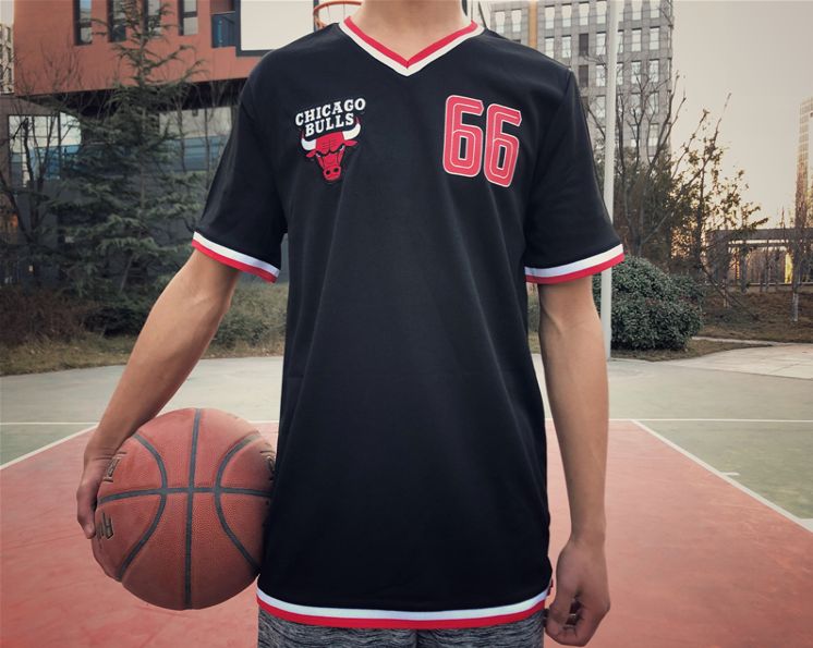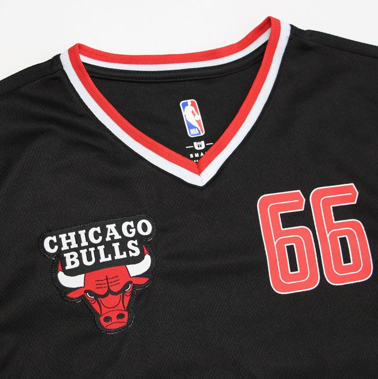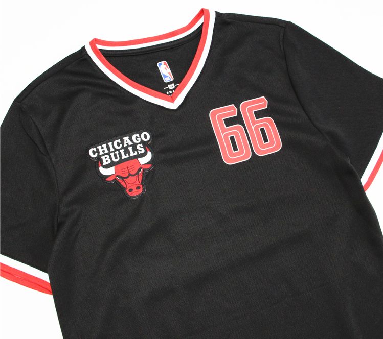 Стильная футболка из легкого и мягкого материала для фанатов команды Чикаго Буллз. Чёрная расцветка с вышитым логотипом на груди и номером 66. На спине винтажная надпись прозвища Bulls и крупно номер 66.- Машинная стирка