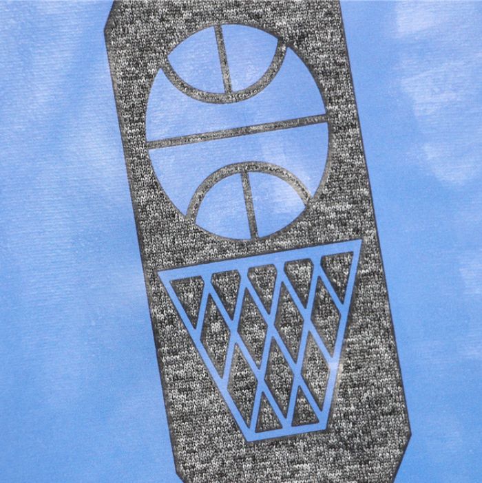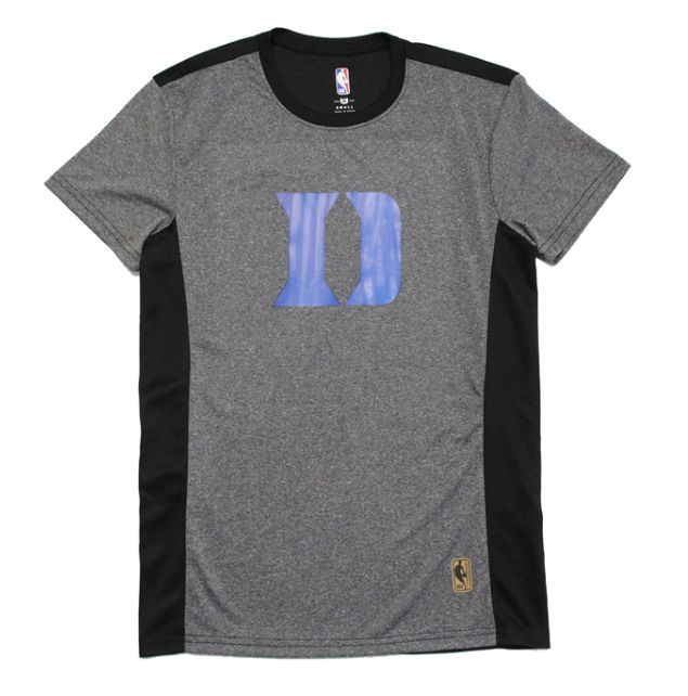 Футболка из черной сетчатой ткани с символикой баскетбольного клуба Duke University Blue Devils в двух вариантах. На груди логотип команды и патч NBA.- Машинная стирка