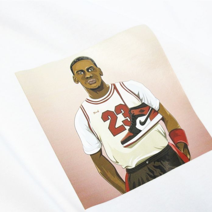 Стильная футболка из мягкого хлопка с принтом молодого Майкла Джордана на груди. Белая расцветка, также есть в чёрном цвете.- Машинная стирка