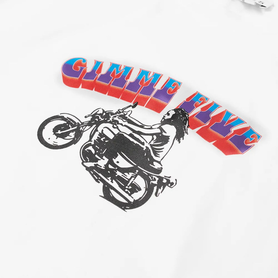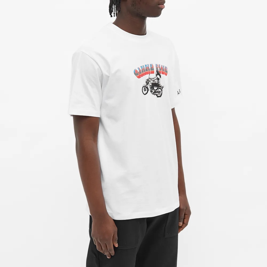 Футболка A.P.C. Samy T-shirt White выполнена из высококачественного материала в белом цвете. APC и Gimme Five объединились для создания этой футболки. Она сшита из чистого хлопка и украшена надписью GIMME FIVE на груди ярким шрифтом в стиле ретро, расположенная прямо над принтом мотоцикла. Футболка в свободном крое и ребристым вырезом для максимального комфорта. Успейте купить пока есть в наличии!