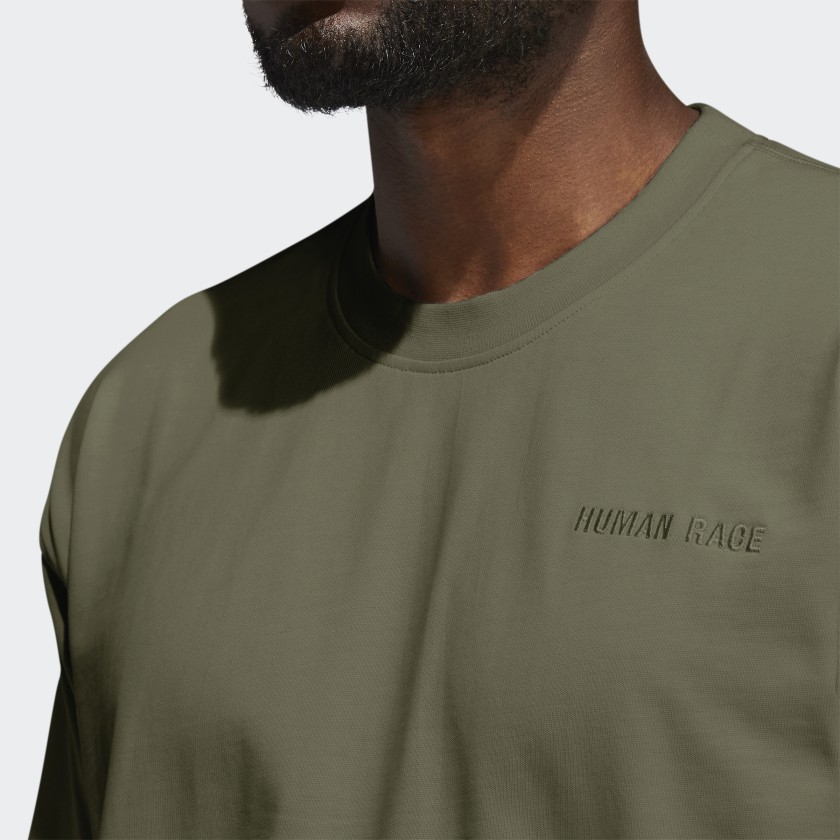 Футболка adidas Pharrell Williams Basics Tee Olive Cargo выполнена из очень мягкого и приятного материала в оливковом цвете. Будьте собой в этой футболке и пусть ваша индивидуальность сияет беззаботным видом. Футболка с короткими рукавами из хлопкового махрового трикотажа с круглым вырезом. Черная тесьма с графическим принтом «Pharrell Williams for the Human Race» на внутренней стороне ворота. Вышитый принт в тон "Human Race" на левой груди и логотип adidas на спине.