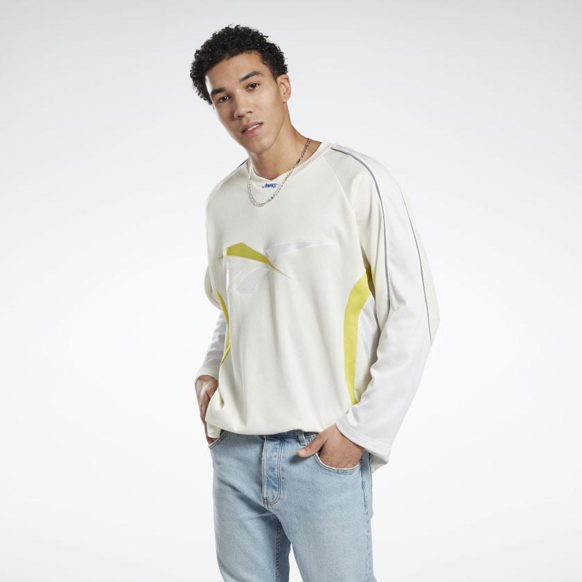 Хоккейная футболка с длинным рукавом Awake x Reebok Hockey Jersey Cream выполнена из высококачественного материала в кремовом цвете. Её образ выполнен в духе 90-х, она создана в сотрудничестве Awake NY с Reebok. Яркие контрастные цвета и изгибы придают ему свежий взгляд на традиционный стиль. На груди футболки изображен логотип бренда Reebok, а на вырезе спереди логотип "Awake NY" для непревзойденного стиля.