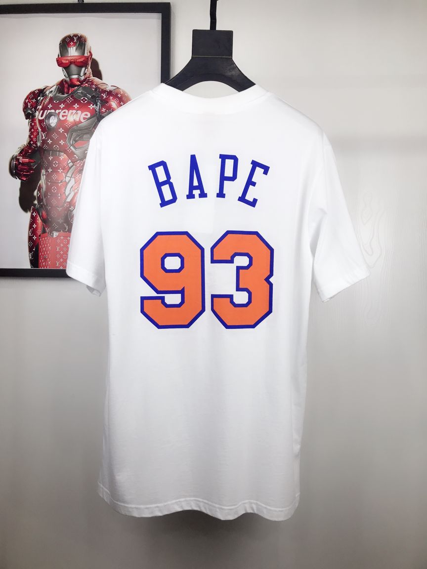 Белая футболка легендарной коллаборации брендов BAPE x Mitchell & Ness и НБА. На груди принт New York и логотип Бэйп, исполненный термопечатью с номером 93 и неймингом на спине.- Машинная стирка