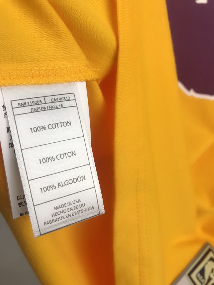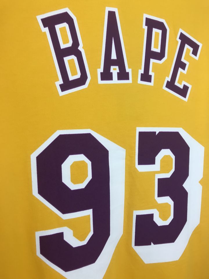 Жёлтая футболка легендарной коллаборации брендов BAPE x Mitchell & Ness и НБА. На груди принт Lakers и логотип Бэйп, исполненный термопечатью с номером 93 и неймингом на спине.- Машинная стирка