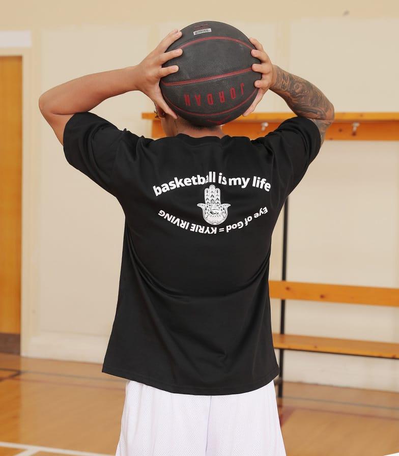 Футболка Ehot Irving Eye to God Black T-Shirt черного цвета отличается оригинальным дизайном и имеет удобный свободный крой. Спину и грудь футболки украшает белый принт с цитатой игрока Кайри Ирвинга. Футболка изготовлена из эластичной ткани с отличной вентиляцией, которая быстро высыхает.