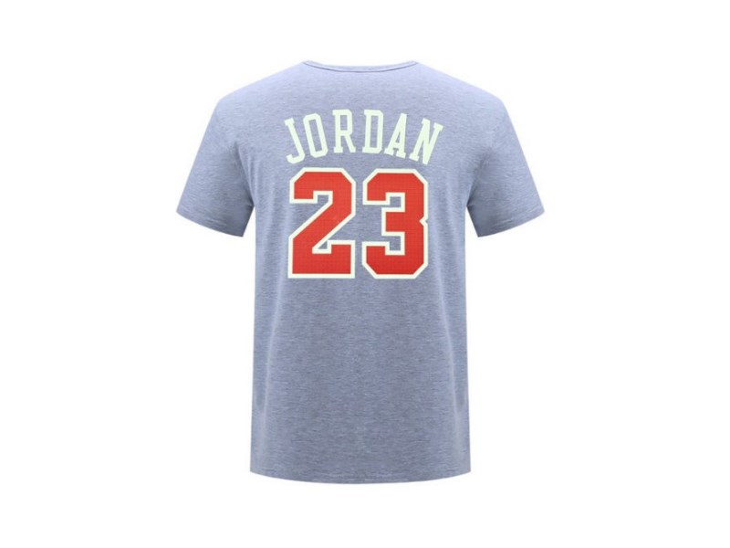 Серого цвета футболка с коротким рукавом и эмблемой команды Чикаго Булз спереди. На спине номер 23 и фамилия Jordan.- Материалы: хлопок, полиэстер