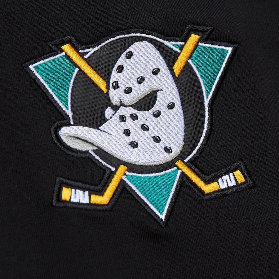 Футболка Mitchell & Ness Black Anaheim Ducks Jacquard Ringer Vintage Logo T-Shirt