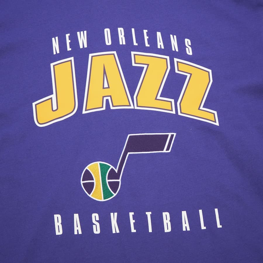 Заказать футболку Mitchell & Ness Purple New Orleans Jazz Hardwood Classics Retro Logo V-Neck T-Shirt с бесплатной доставкой.