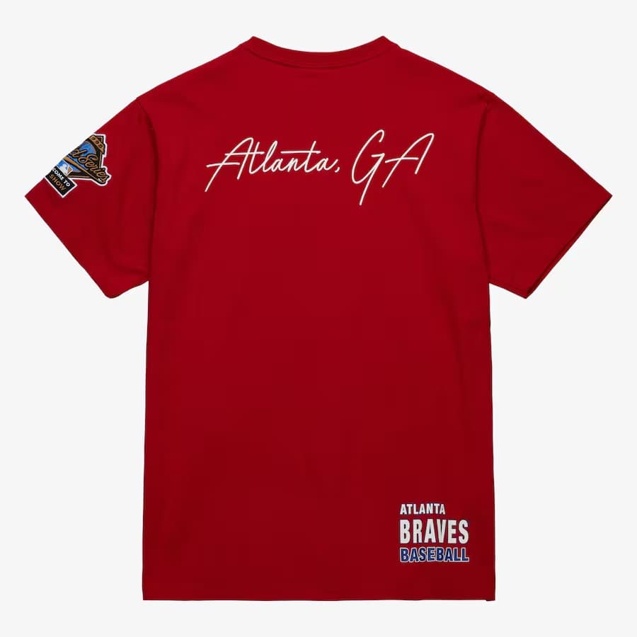 Заказать футболку Mitchell & Ness Red Atlanta Braves Cooperstown Collection Hometown Vintage Logo T-Shirt с бесплатной доставкой.
