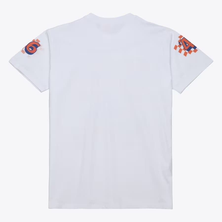 Футболка Mitchell & Ness White New York Knicks Speedway T-Shirt выполнена из высококачественного хлопка в белом цвете с оранжевыми акцентами, она посвящена команде НБА Никс. Футболка с классическим кроем, логотипами Mitchell & Ness дополнит ваш ретро-стиль. Прорезиненная графика в гоночном стиле, нанесенная методом термопечати, придает фактурный и объемный вид. Мягкая, дышащая ткань обеспечивает комфорт в течение всего дня, независимо от того, находитесь ли вы на корте или следите за игрой из дома.- Цвет: Белый