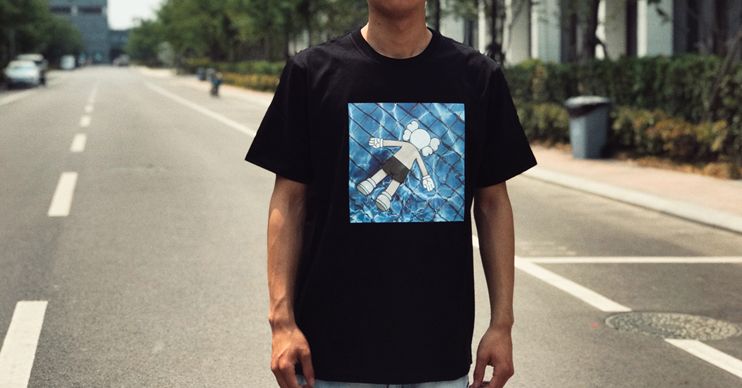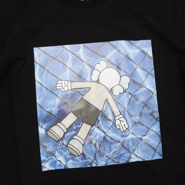 Футболка из мягкого хлопка в чёрной расцветке. На груди принт фигуры дизайнера KAWS, плавающим в бассейне вниз головой. Есть белая расцветка. Всего 100 штук!- Машинная стирка