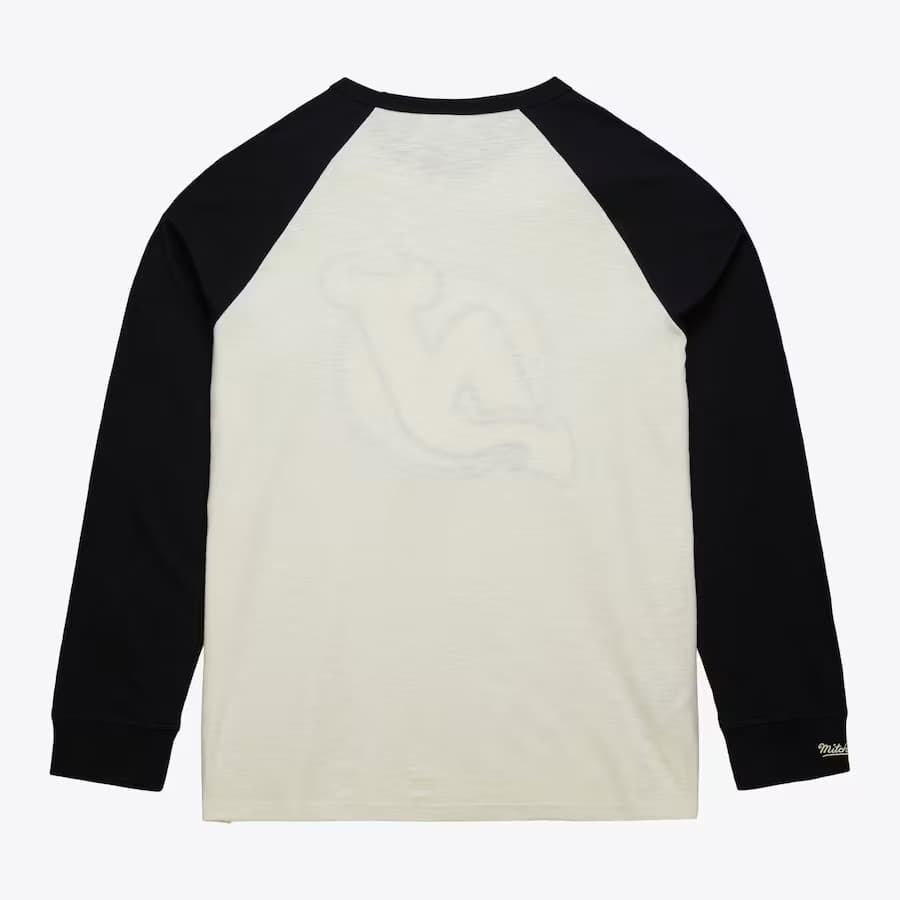 Мужской лонгслив Mitchell & Ness Cream New Jersey Devils Legendary Slub Raglan Long Sleeve T-Shirt выполнен из высококачественного хлопка в кремовом цвете с черными акцентами и посвящен команде Девилс. Лонгслив с классическим кроем и логотипом Mitchell & Ness дополнит ваш ретро-стиль.- Цвет: Кремовый