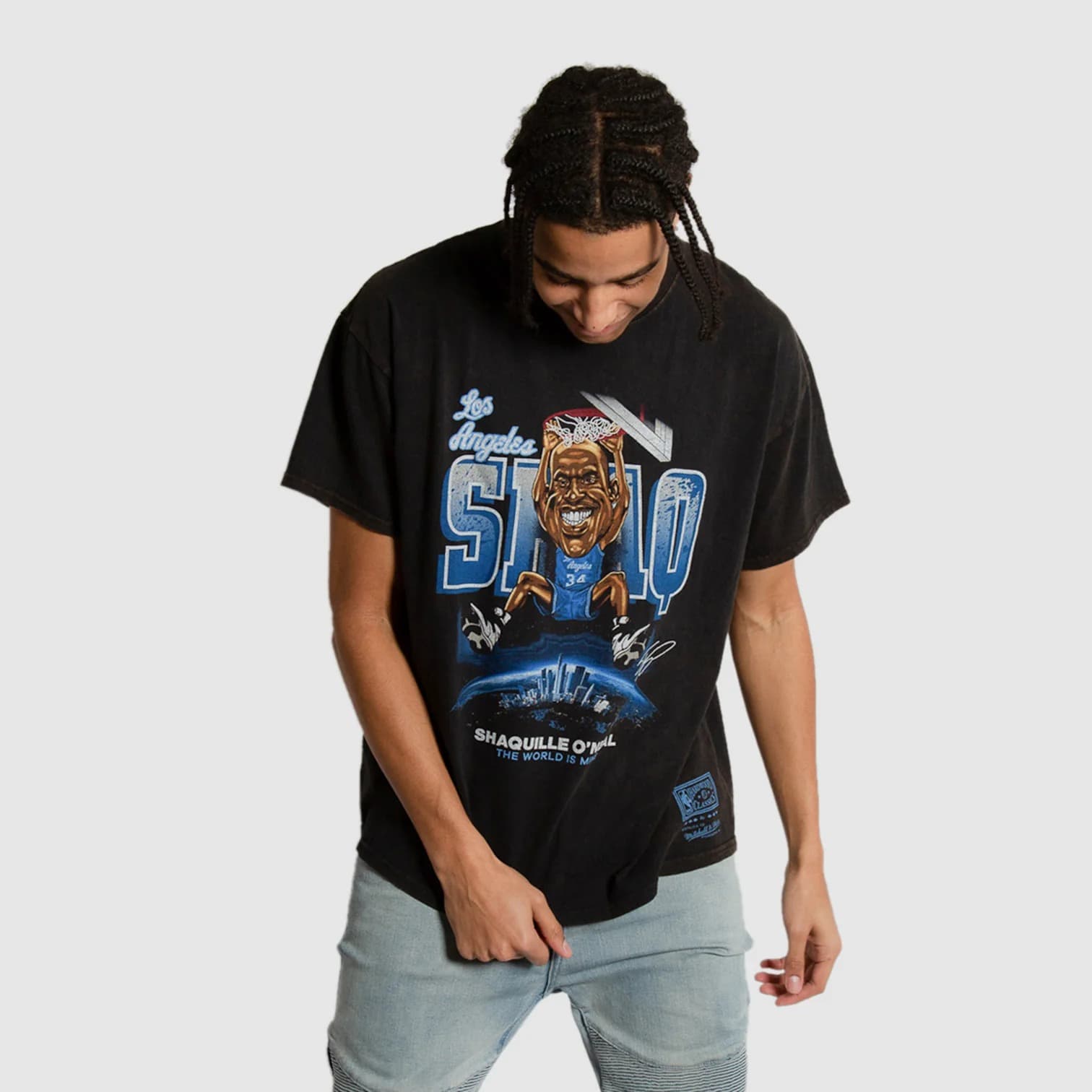 Заказать футболку Mitchell & Ness Shaquille O'Neal Los Angeles Lakers Vintage Caricature NBA T-Shirt с бесплатной доставкой.