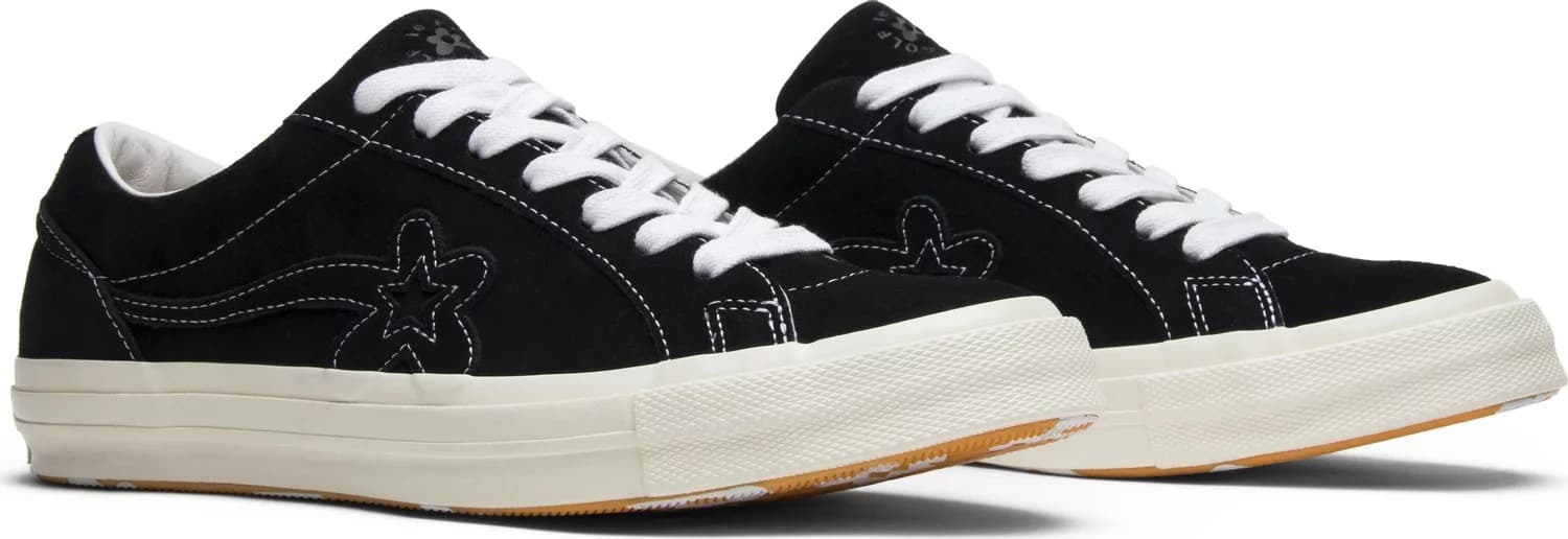 Tyler, the Creator объединился с Converse для выпуска коллекции Golf le Fleur 'Mono' в апреле 2018 года. Как следует из названия, разнообразные модели обуви и одежды выполнены в монохромной гамме. Эти полностью черные One Star имеют замшевый верх с контрастной строчкой на накладных панелях и логотипе Golf le Fleur. Оранжевая подошва под ногами покрыта белым цветочным принтом.- Цвета: Black