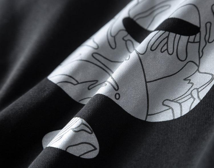 Полностью чёрное худи с брендированным принтом на груди в виде надпись AAPE и обезьяны в серой расцветке.