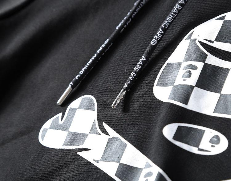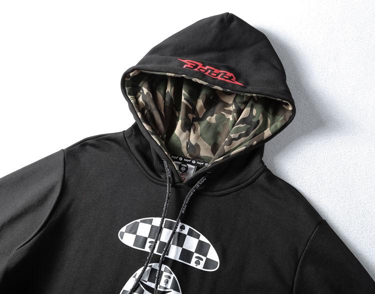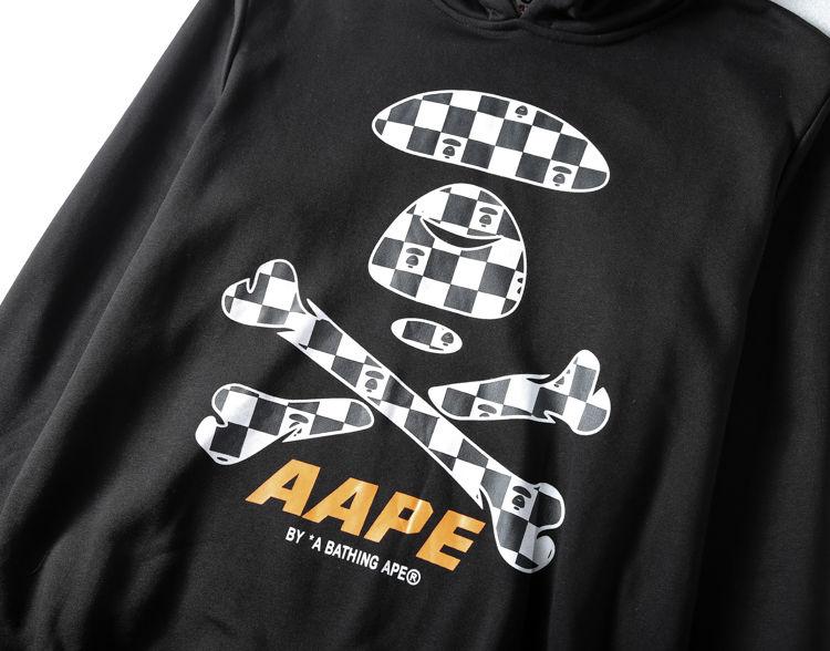 Чёрная расцветка худи с брендированным принтом на груди в виде надпись AAPE и фирменной обезьяны в шахматной расцветке. Данная модель худи имеется в камуфляжной расцветке.- Материал: хлопок, полиэстер, вискоза