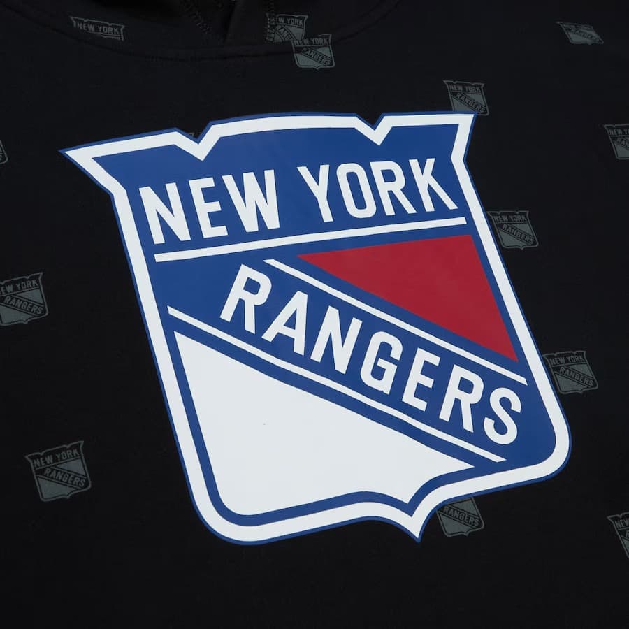 - Худи Mitchell & Ness Black New York Rangers Allover Print Fleece Pullover Hoodie