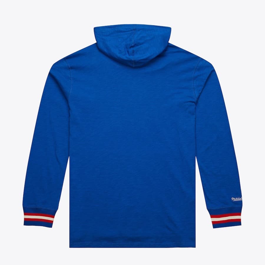 Насладитесь идеальным сочетанием комфорта и стиля ретро в этой легкой голубой толстовке с красными акцентами Mitchell & Ness Blue New York Rangers Legendary Slub Pullover Hoodie. На ней изображена графика клуба и цвета команды Рейнджерс. Удобный передний карман и капюшон делают это худи идеальным предметом гардероба в прохладные игровые дни.- Цвет: Голубой