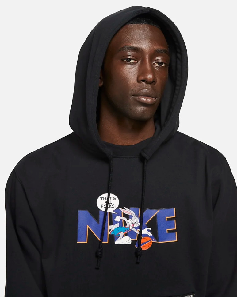 Худи NBA Nike Tune Squad Hoodie - Space Jam c длинным рукавом и капюшоном из высококачественного материала в чёрном цвете. Оно создано от Nike с обновленной тканью, чтобы носить его весь день. Отводящая пот технология Dri-FIT и гибкие вставки позволяют носить его на спортивной площадке. На худи есть надпись Nike и принт персонажа команды Tune Squad (Bugs Bunny) из фильма Space Jam 2, для вашего комфортного и стильного образа.- Пол: мужской