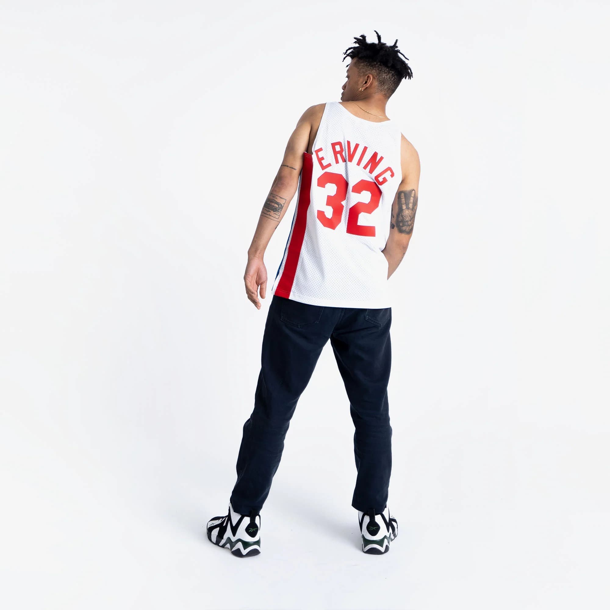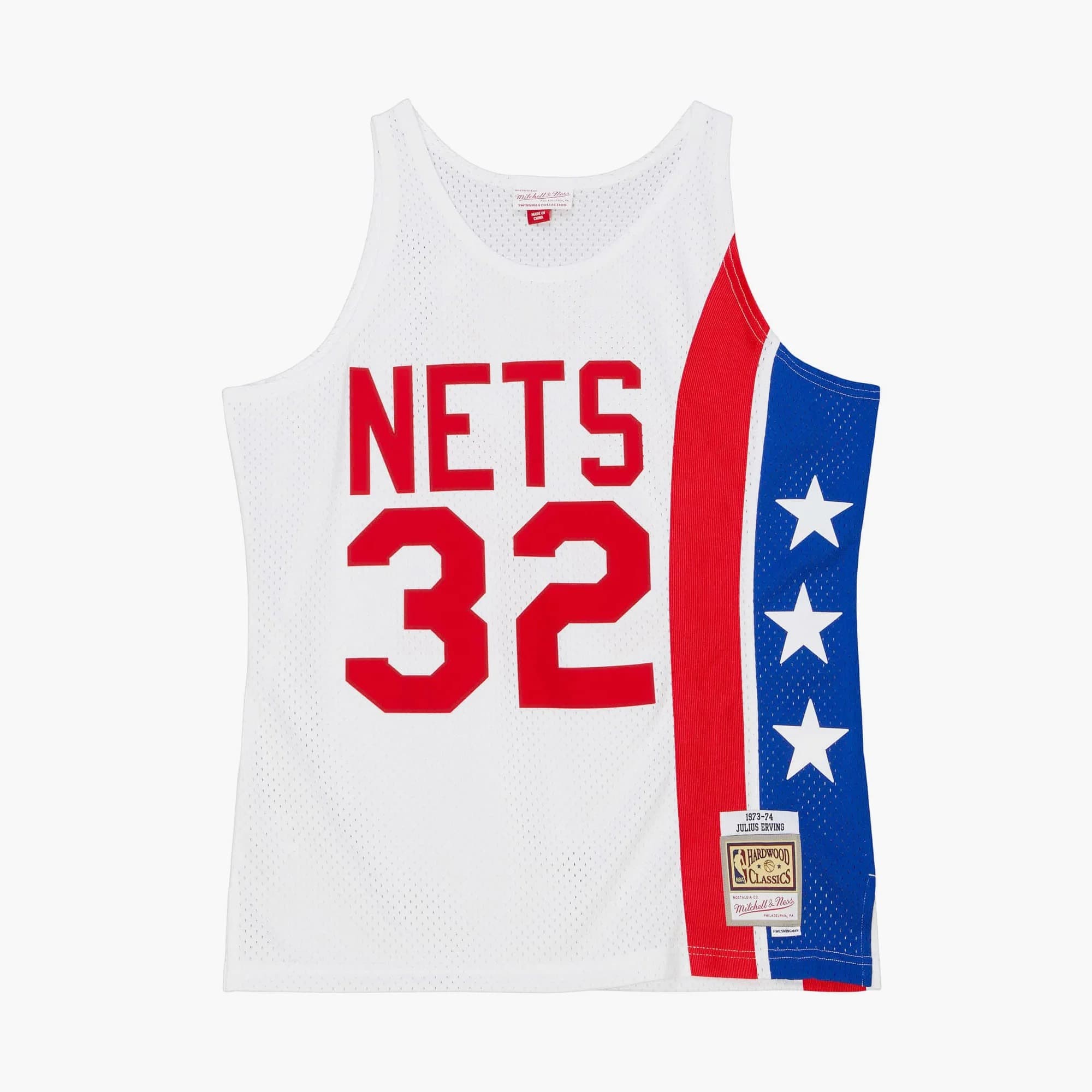 - Баскетбольная джерси 1973-1974 New Jersey Nets Julius Erving #32 Swingman Mitchell & Ness Hardwood Classics Throwback NBA White Jersey