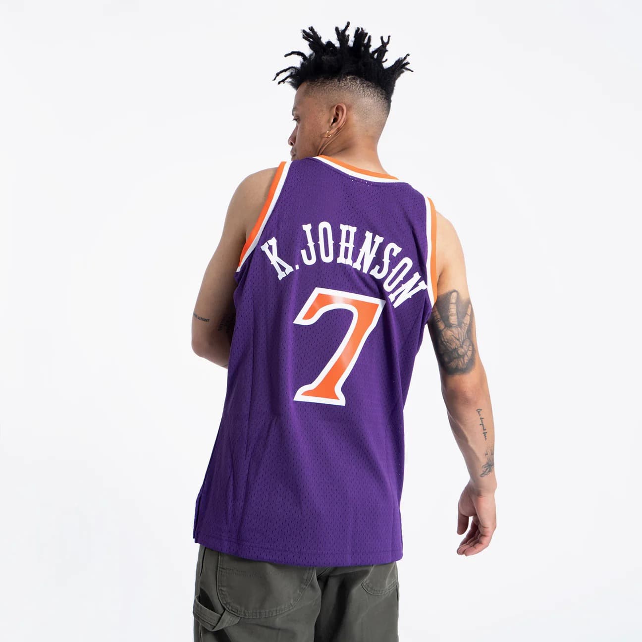 Вдохновленная майками, которые носили легенды НБА, эта фиолетовая майка 1989-90 Phoenix Suns Kevin Johnson #7 Swingman Hardwood Classics Purple Jersey сшита по образцу майки Кевина Джонсона. Будь то вечерняя тренировка или следующий матч любимой команды, эта майка создана для повседневного ношения, украшена саржевыми элементами с трафаретной печатью и сетчатым материалом, обеспечивающим воздухопроницаемость во время активной игры. Эта майка предназначена для мужчин; женщинам может потребоваться уменьшение размера в зависимости от длины и посадки.