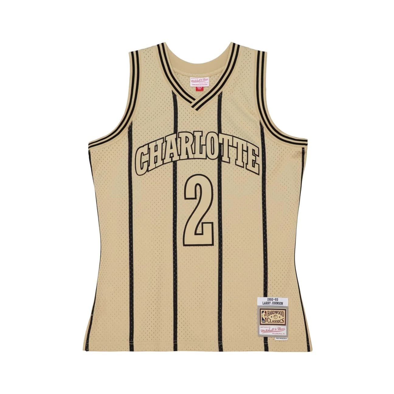 - Баскетбольная джерси 1992-93 Charlotte Hornets Larry Johnson #2 Swingman Hardwood Classics Khaki Jersey