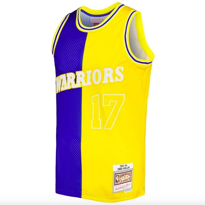 - Баскетбольная джерси 1993-94 Golden State Warriors #17 Chris Mullin Mitchell & Ness Split Royal/Gold Jersey