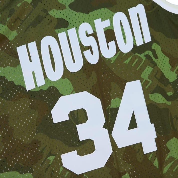 - Баскетбольная джерси 1993-94 Houston Rockets #34 Hakeem Olajuwon Mitchell & Ness Ghost Green Camo Jersey