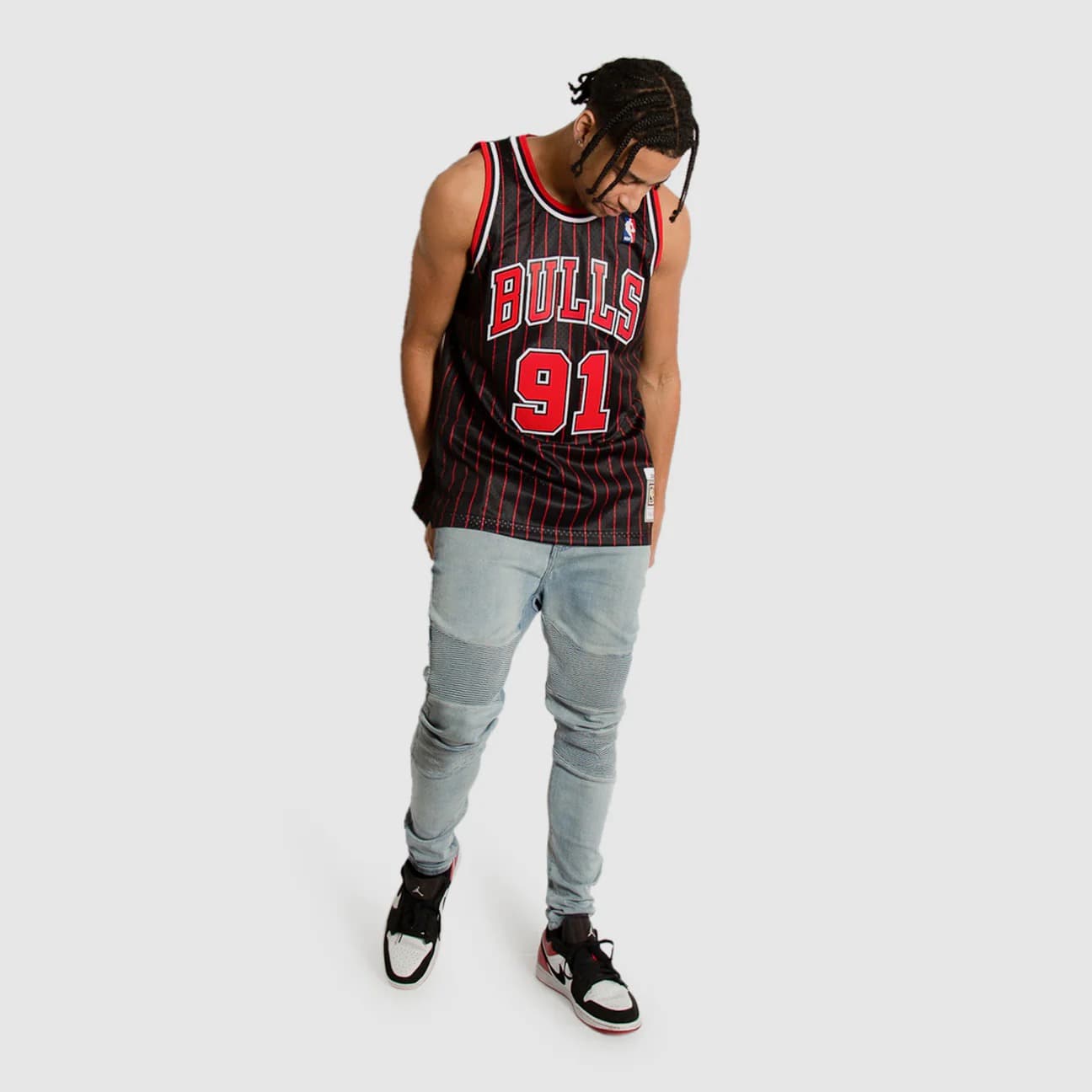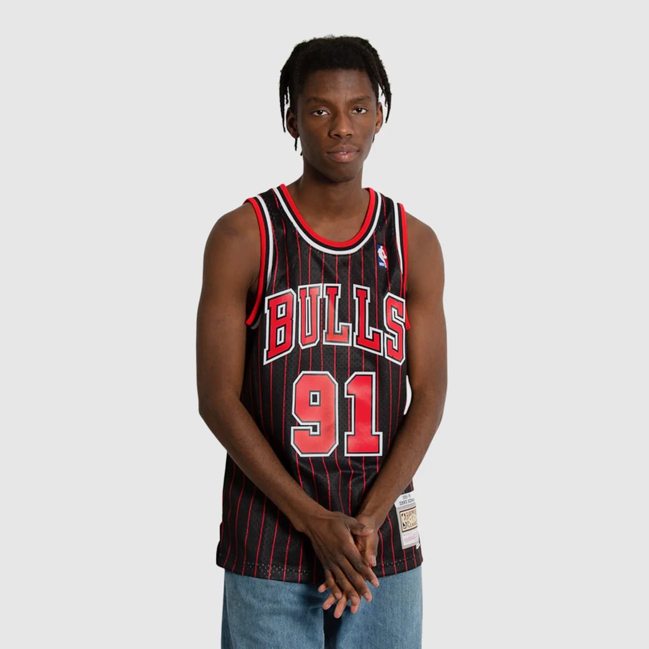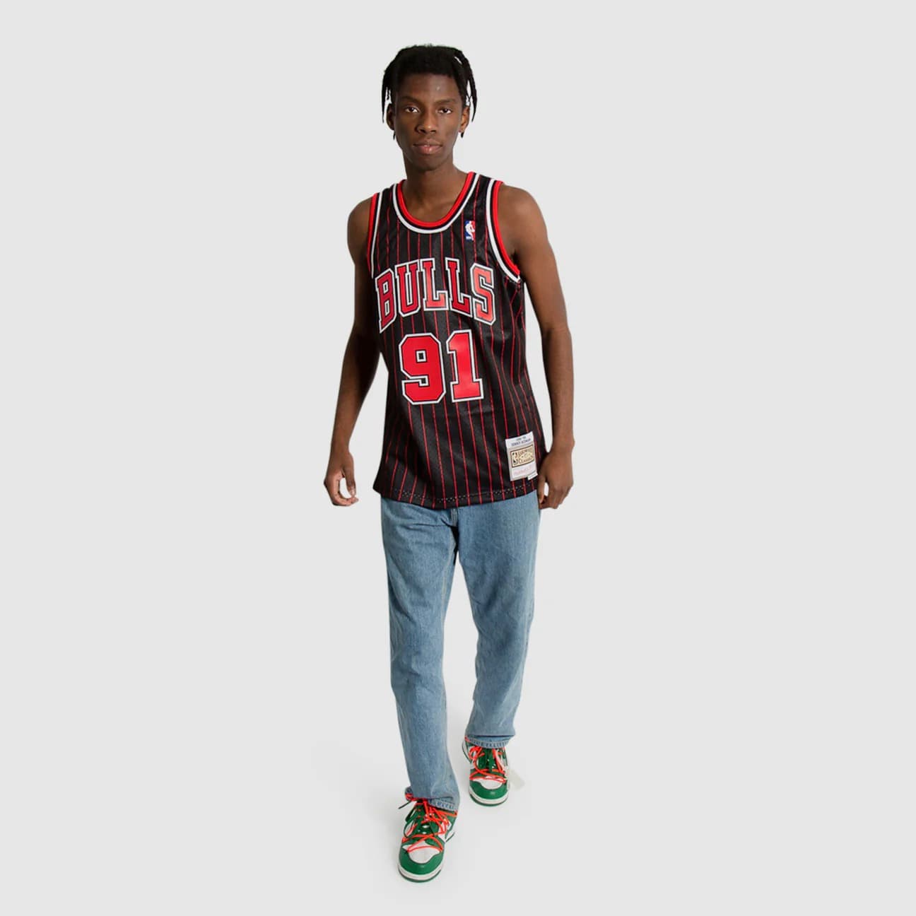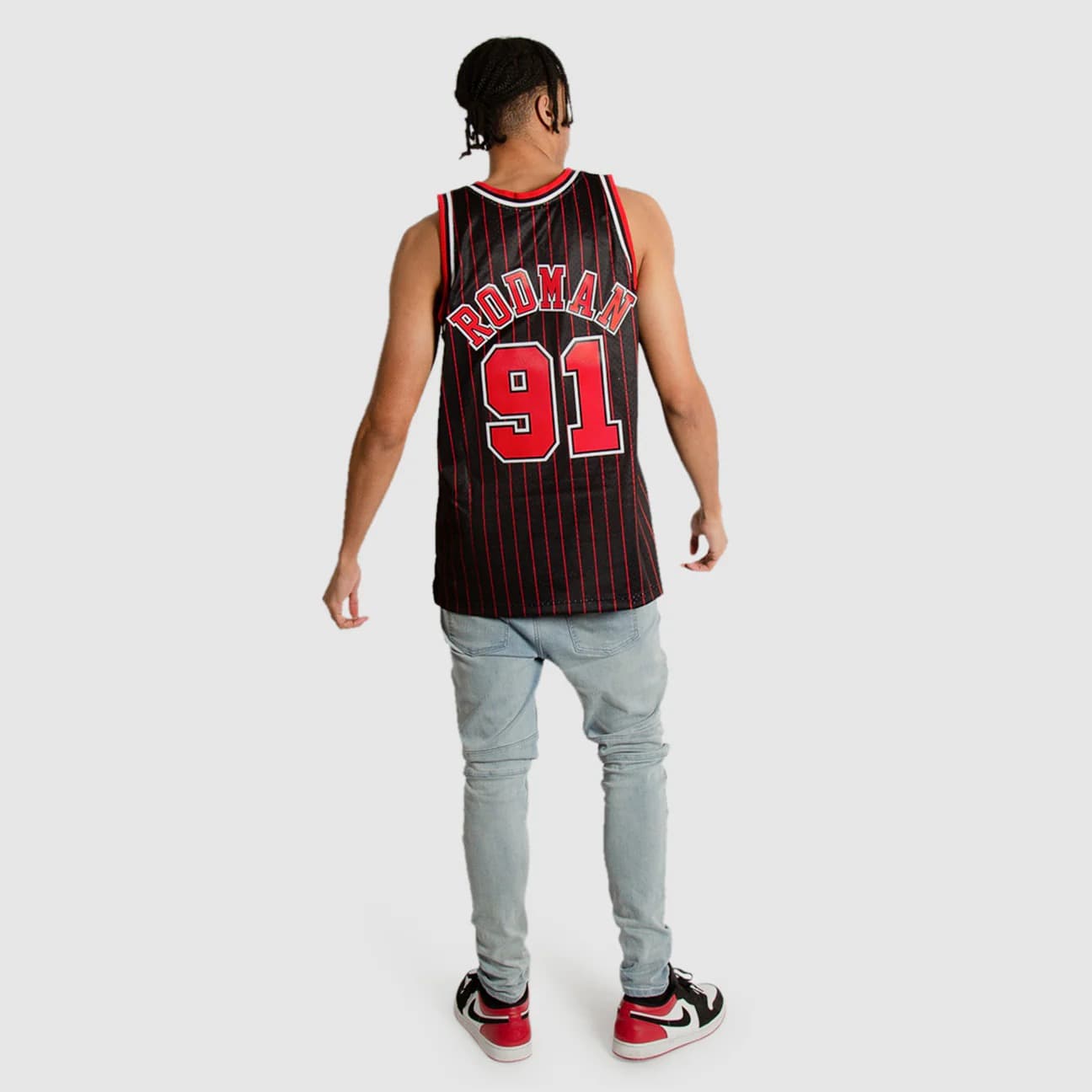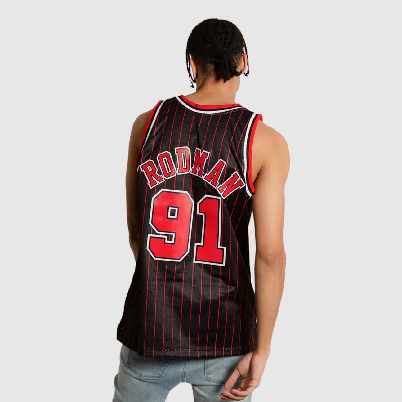 - Баскетбольная джерси 1995-1996 Chicago Bulls Dennis Rodman #91 Swingman Hardwood Classic Pinstripe Jersey