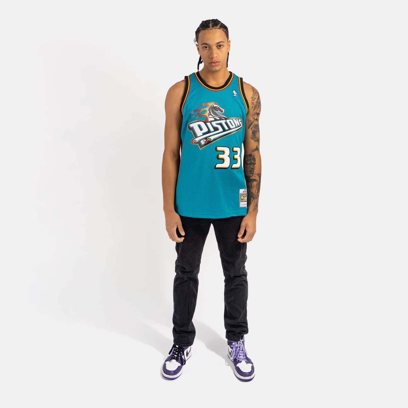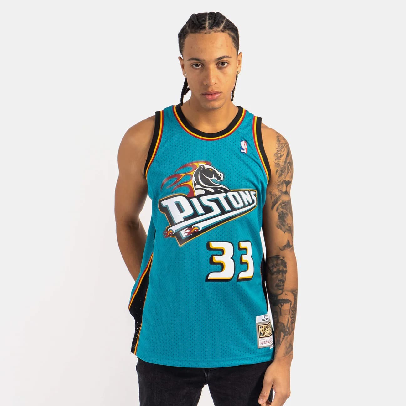 Заказать джерси 1998-1999 Detroit Pistons Grant Hill #33 Swingman Hardwood Classic Teal Jersey с бесплатной доставкой.