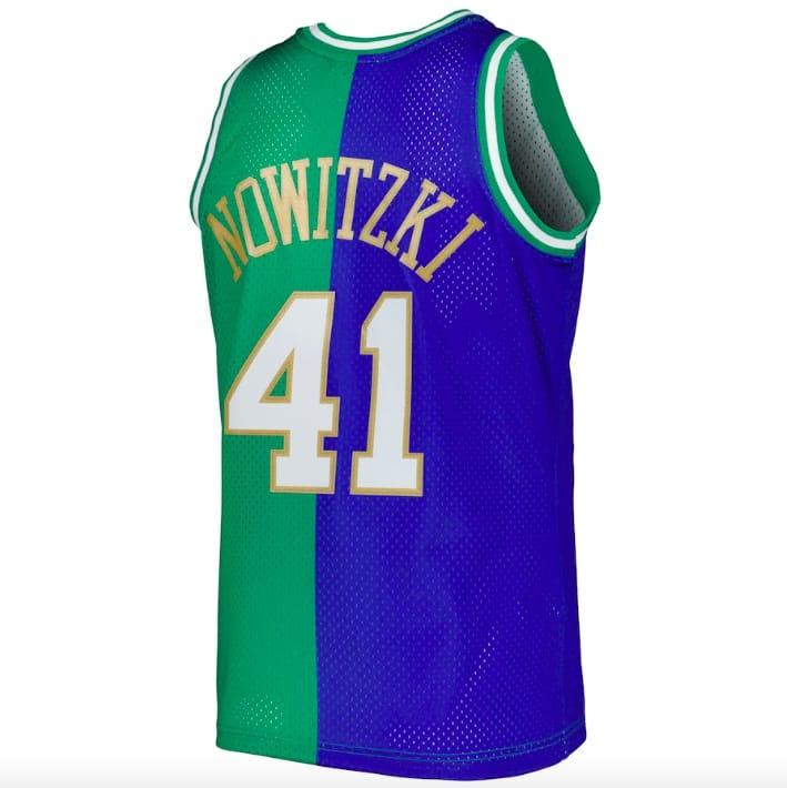 - Баскетбольная джерси 1998-2019 Dallas Mavericks #41 Dirk Nowitzki Mitchell & Ness Split Blue/Green Jersey