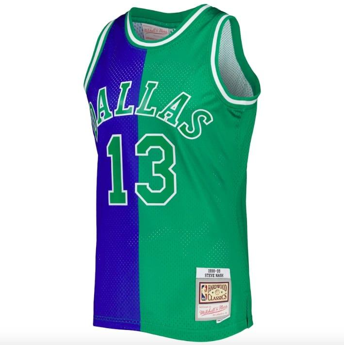 Баскетбольная джерси 1998-99 Dallas Mavericks #13 Steve Nash Mitchell & Ness Split Blue/Green Jersey