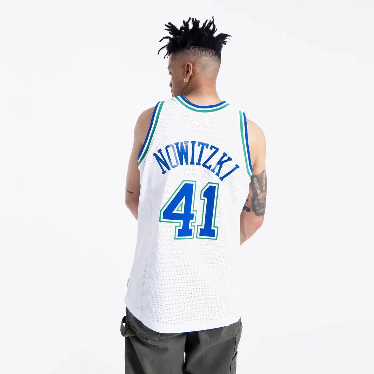 - Баскетбольная джерси 1998-99 Dallas Mavericks Dirk Nowitzki #41 Swingman Jersey Hardwood Classics White Jersey