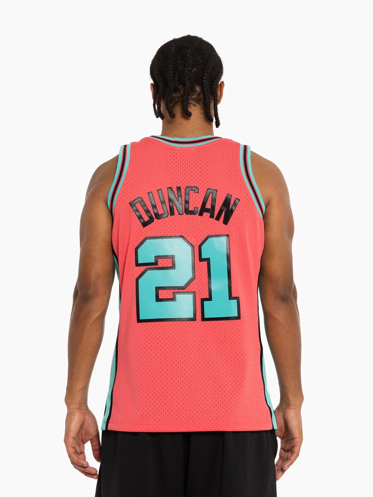 - Баскетбольная джерси 1998-99 San Antonio Spurs Tim Duncan #21 Hardwood Classics Throwback NBA Seasonal City Swingman Pink Jersey