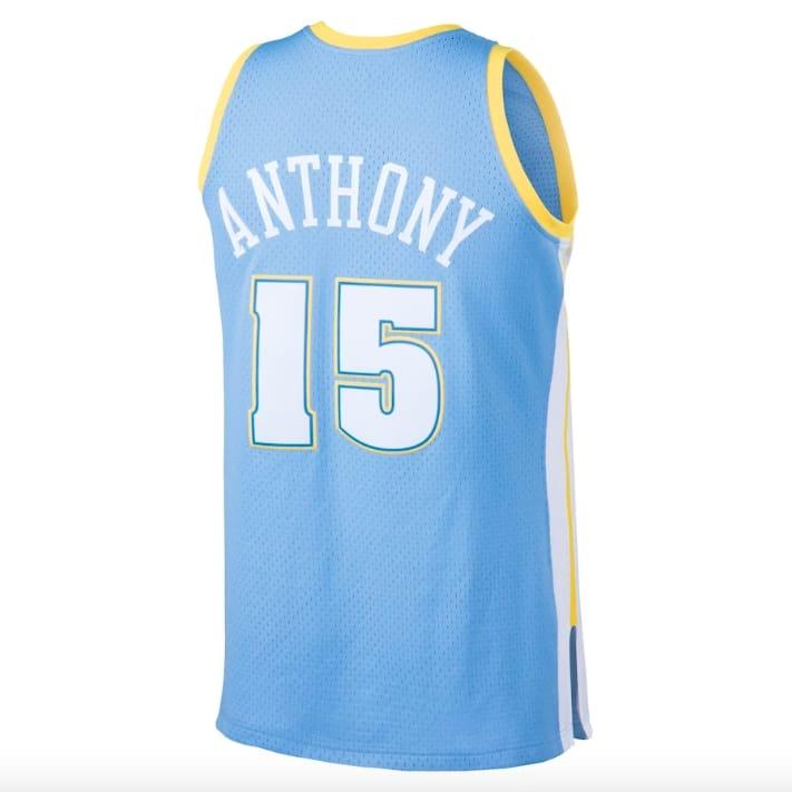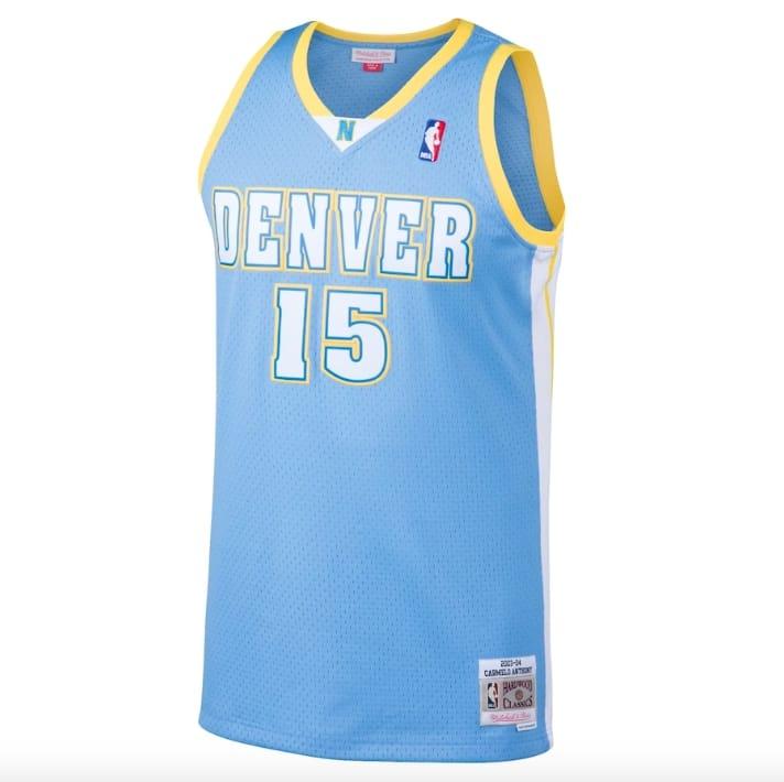 - Баскетбольная джерси 2003-04 Denver Nuggets #15 Carmelo Anthony Mitchell & Ness Light Blue Jersey