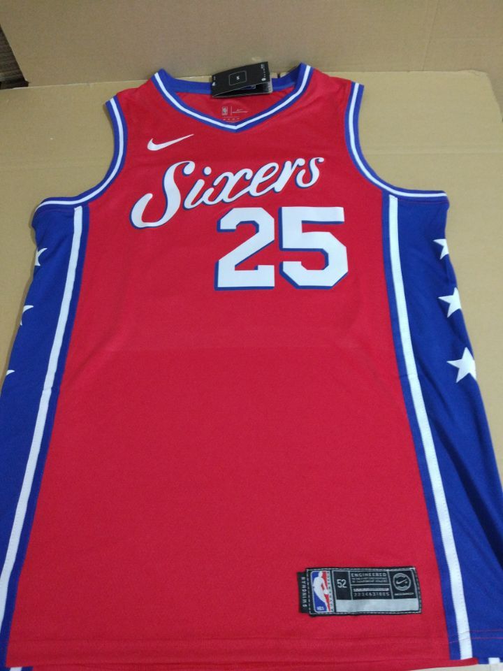 Красная расцветка джерси баскетбольного игрока Бэна Симмонса из команды Фила Сиксерс. Издание Statement Edition сезона 2017-18 гг. На груди номер 25 и прозвище команды Sixers.- Качество: swingman