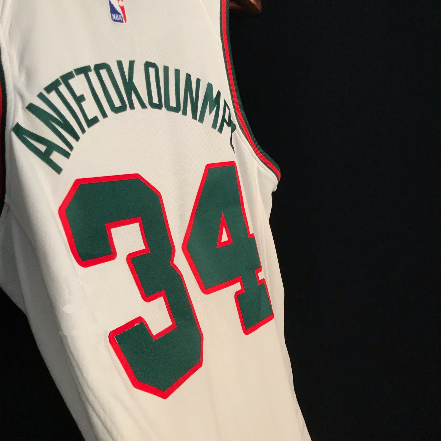 Белая расцветка джерси баскетбольного игрока Джанниса Антентокунмпо из команды Милуоки Бакс. Издание Classic Edition. На груди номер 34 и прозвище команды Bucks.- Качество: swingman