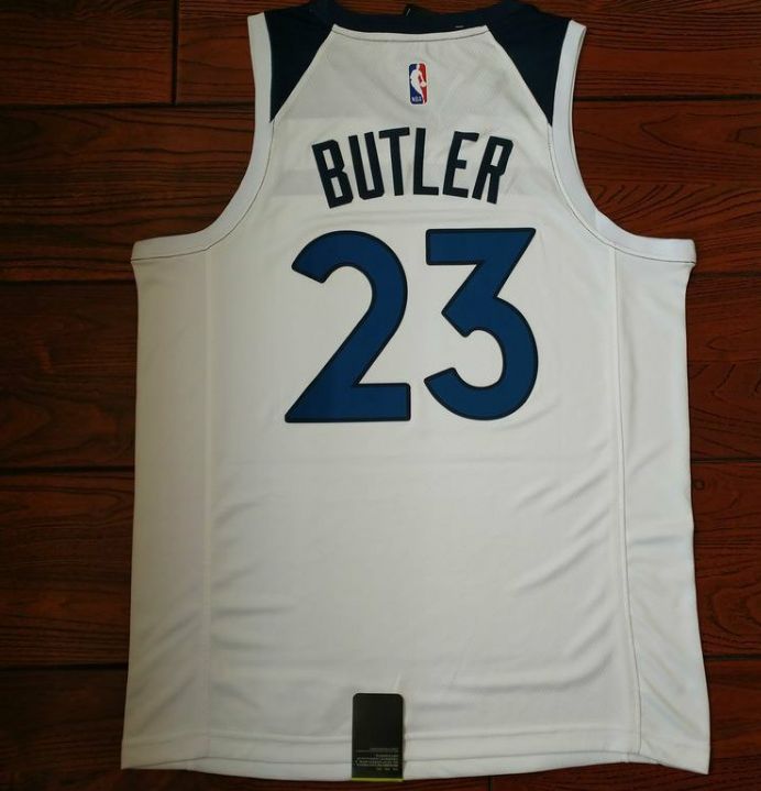 Белая расцветка джерси баскетбольного игрока Джимми Батлера из команды Миннесота Тимбервулвз. Издание Association Edition сезона 2017-17 гг. Название команды впереди с именем и номером игрока Butler на обороте.- Качество: swingman