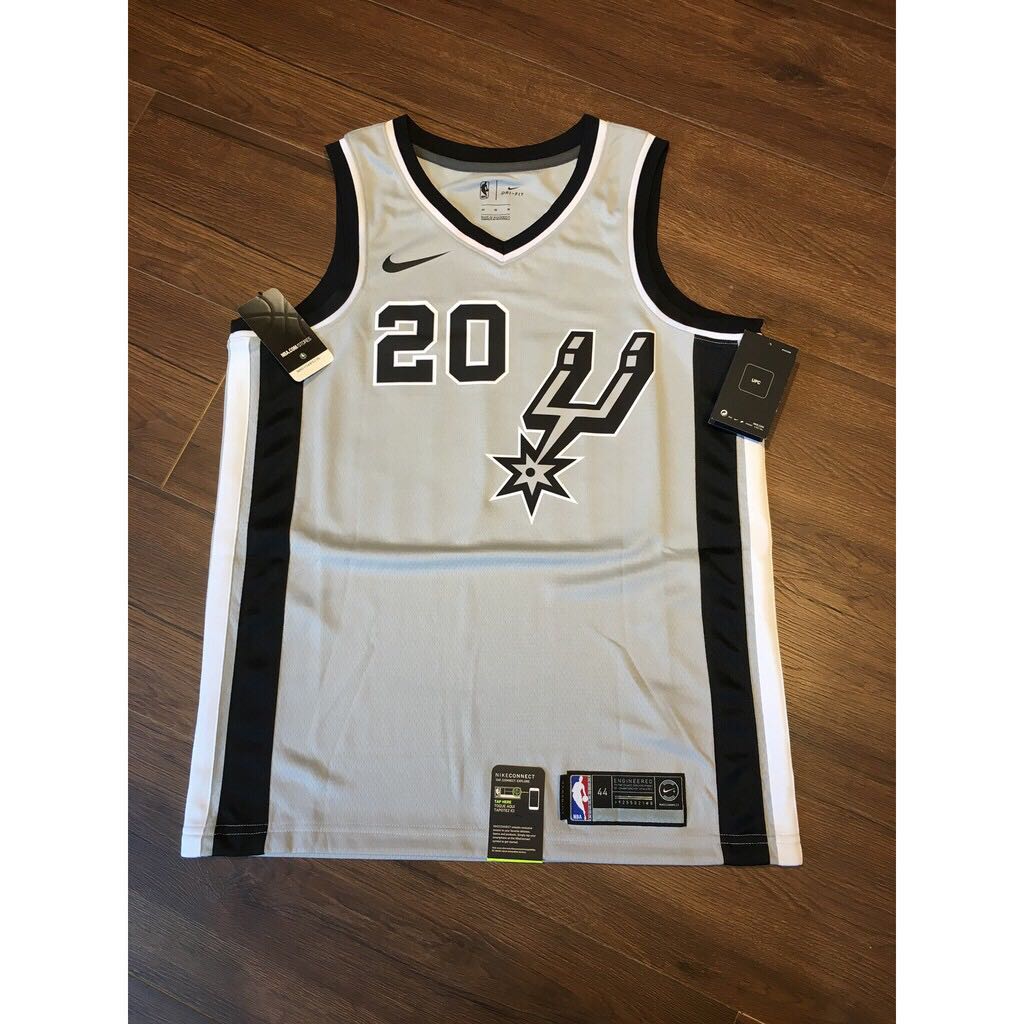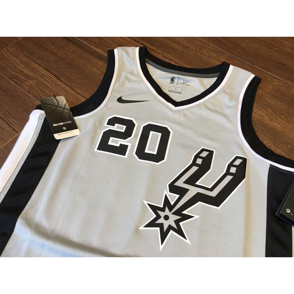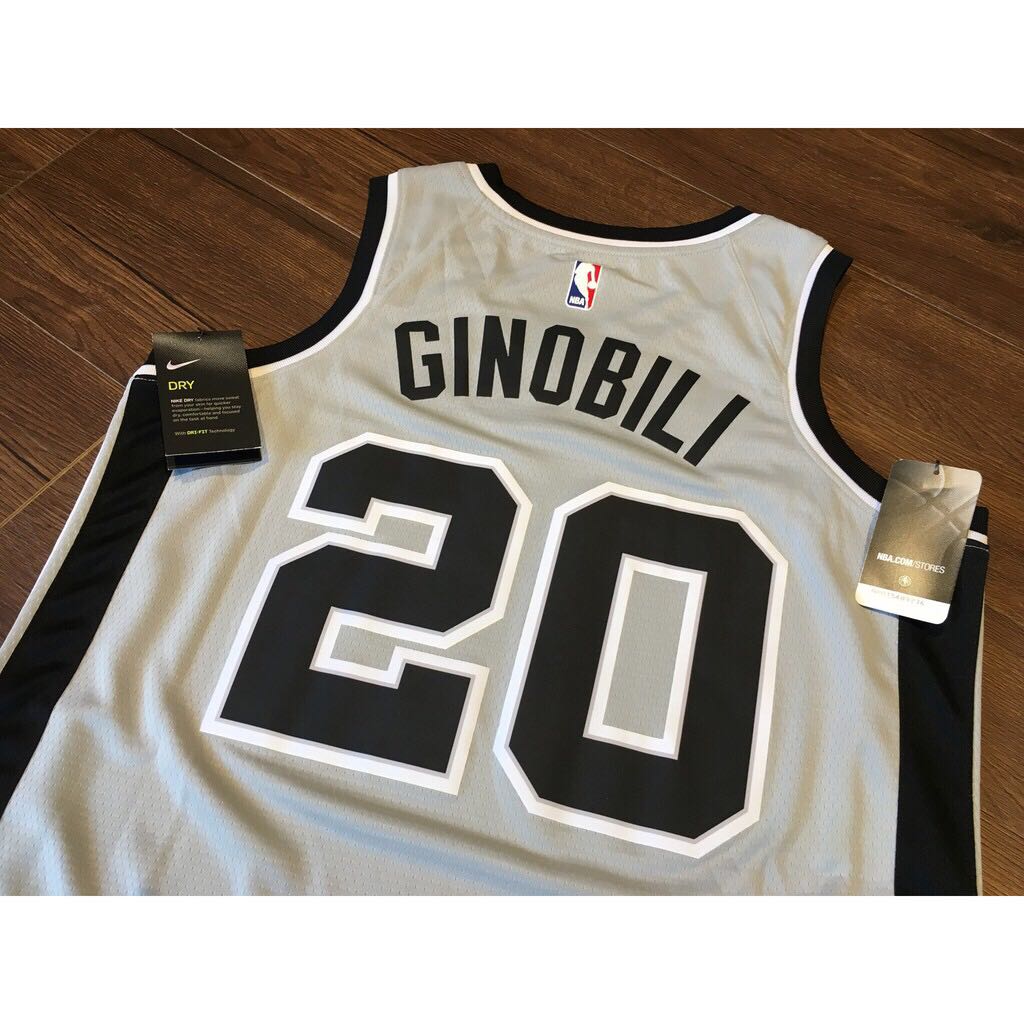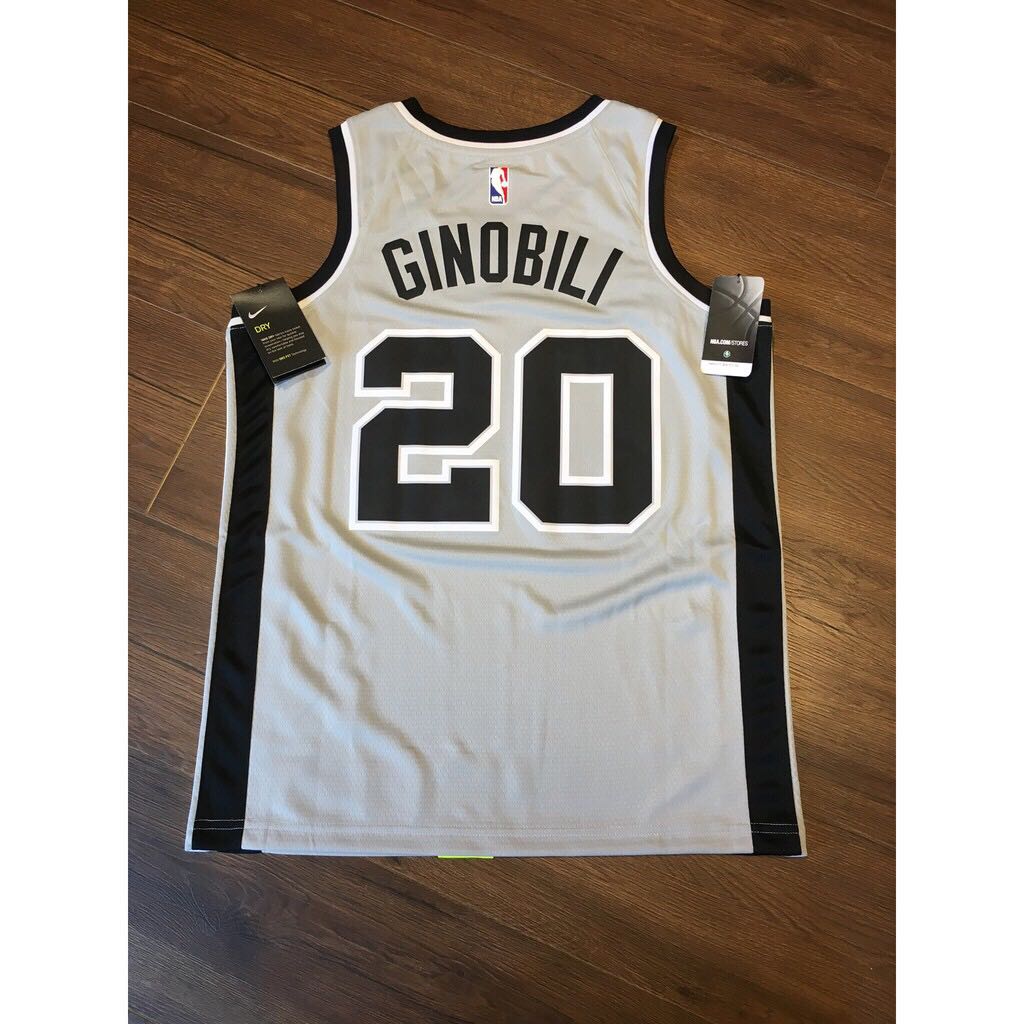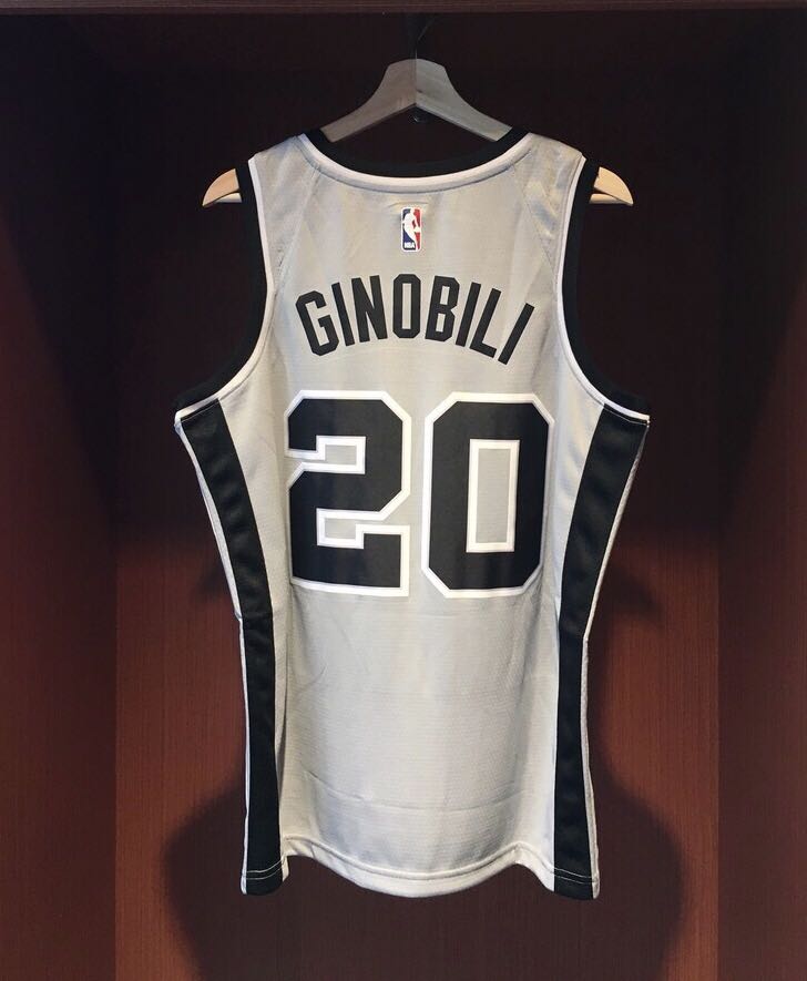Серая расцветка джерси баскетбольного игрока Ману Джинобили из команды Сан Антонио Спёрс. Это издание Statement Edition сезона 2017-18 гг. На спине наклеены номер 20 и фамилия игрока Ginobili. На груди логотип команды Spurs.- Качество: swingman