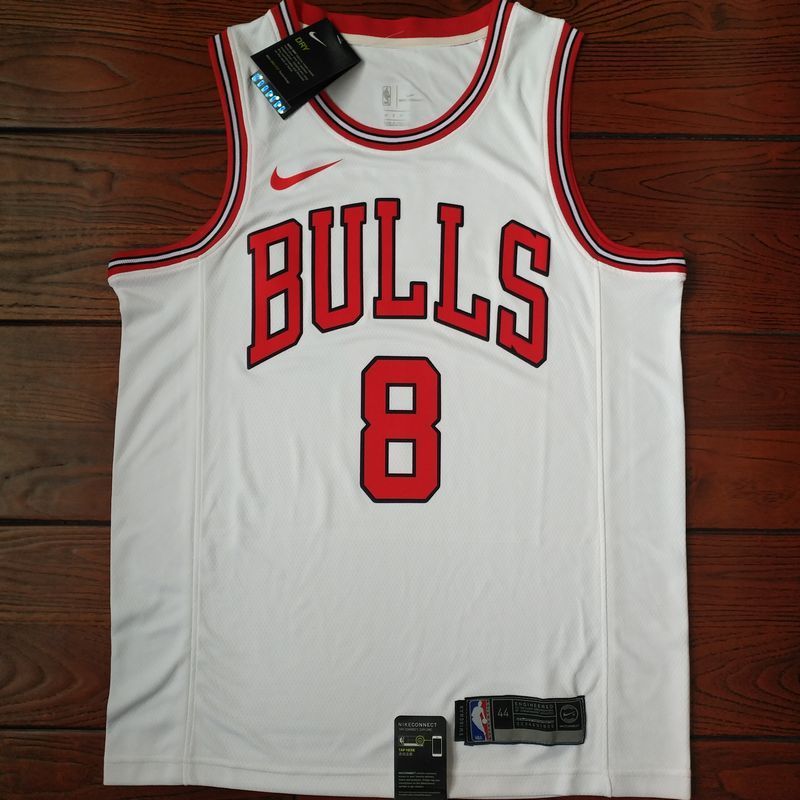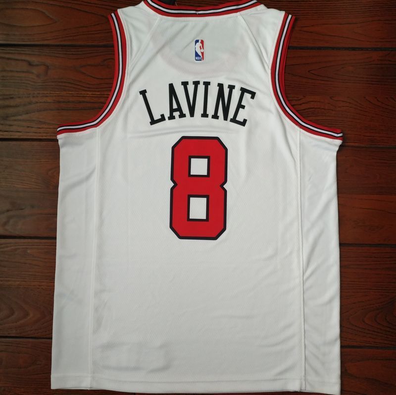 Белая расцветка джерси баскетбольного игрока Зака ЛаВайна из команды Чикаго Буллс. Издание Association Edition сезона 2017-18 года. На груди номер 8 и прозвище команды Bulls.- Качество: swingman