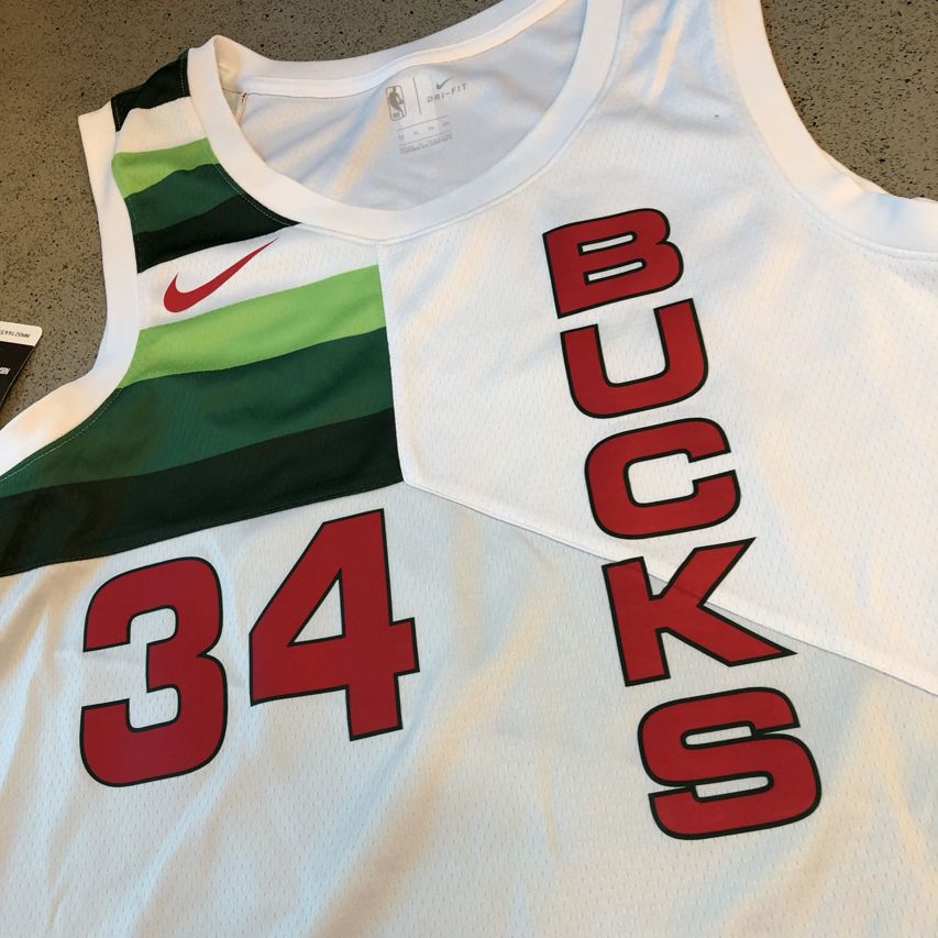 Светлая расцветка джерси баскетбольного игрока Джанниса Антентокунмпо из команды Милуоки Бакс. Издание Earned Edition сезона 2018-19 гг.- Качество: swingman
