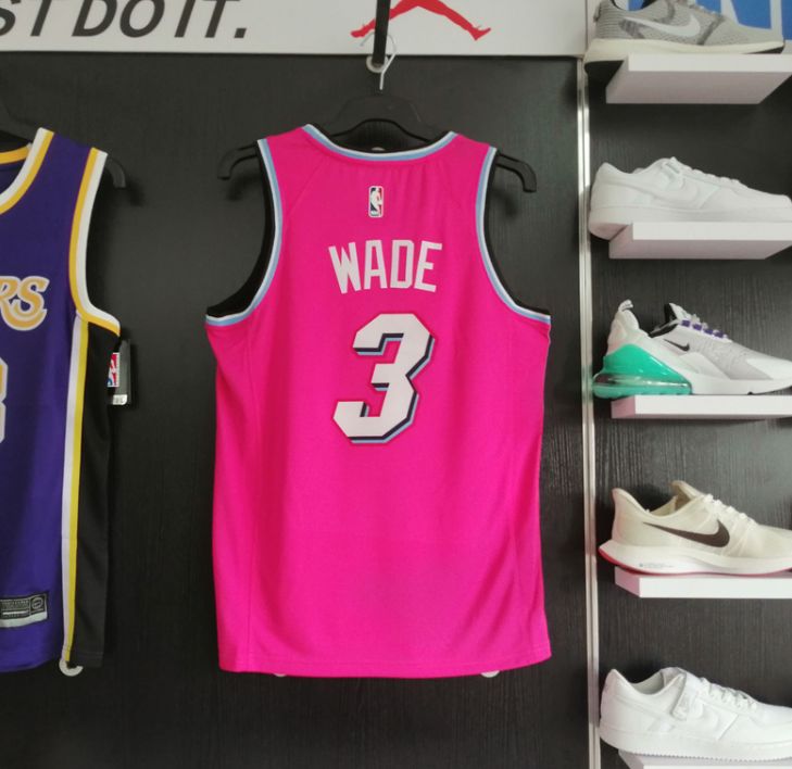 - Баскетбольная джерси 2018-19 Dwyane Wade Miami Heat #3 Earned Pink