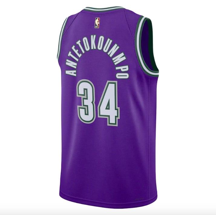- Баскетбольная джерси 2022-23 Milwaukee Bucks #34 Giannis Antetokounmpo Swingman Classic Purple Jersey