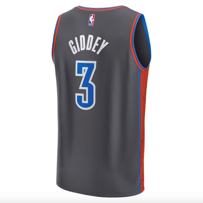 - Баскетбольная джерси 2022-23 Oklahoma City Thunder #3 Josh Giddey Fastbreak City Anthracite Jersey