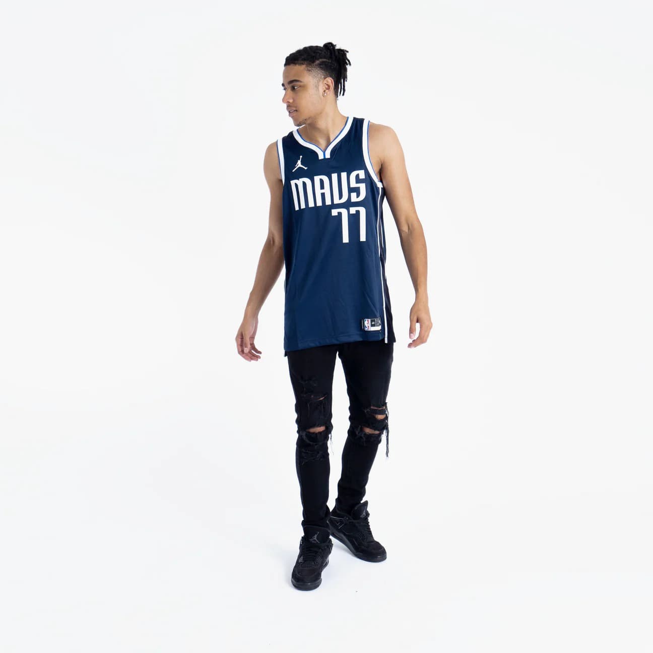 - Баскетбольная джерси 2023-24 Dallas Mavericks Luka Dončić #77 Swingman Statement Edition Navy Jersey