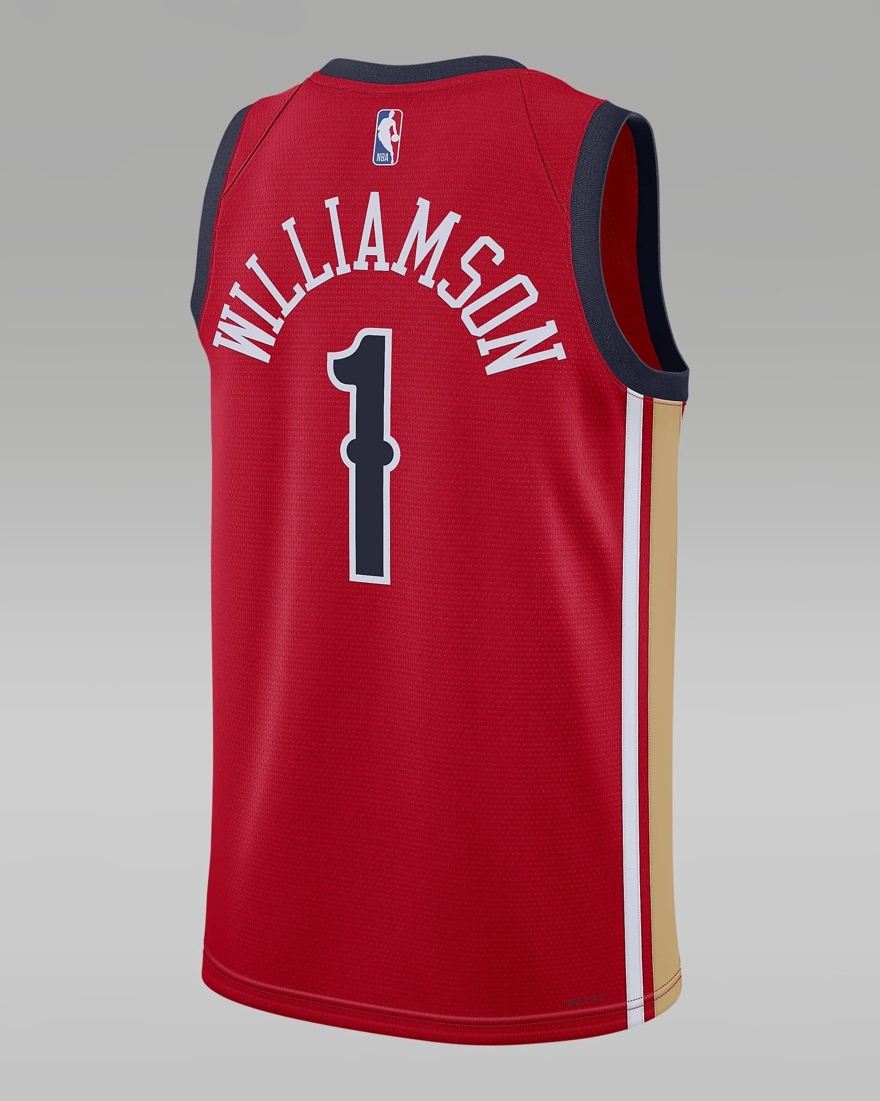 - Баскетбольная джерси 2023-24 New Orleans Pelicans Zion Williamson #1 Swingman Statement Edition University Red Jersey