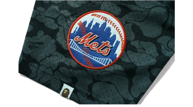 Футболка BAPE x Mitchell & Ness Mets Jersey Black имеет оригинальный темный камуфляжный принт и синюю отделку. На груди и рукаве дизайн дополняется цветным логотипом бренда и надписью Mets в синей расцветке. Снизу классический логотип данной коллаборации. Сзади нанесен крупный номер 93 и узнаваемая надпись бренда.- Машинная стирка